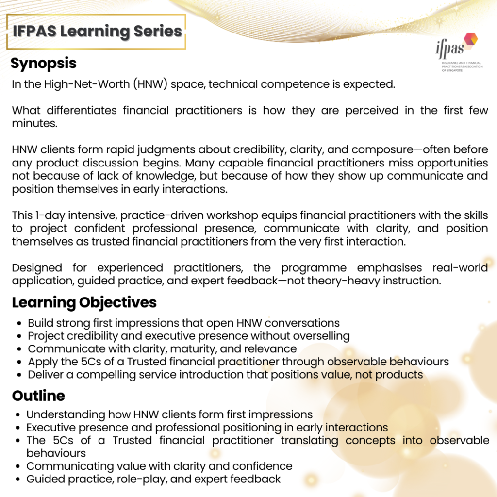 Financial Practitioner (IFPAS Member)Financial Practitioner (Non-IFPAS Member)Staff of Affiliated Corporation or Agency PartnerMember of the Public